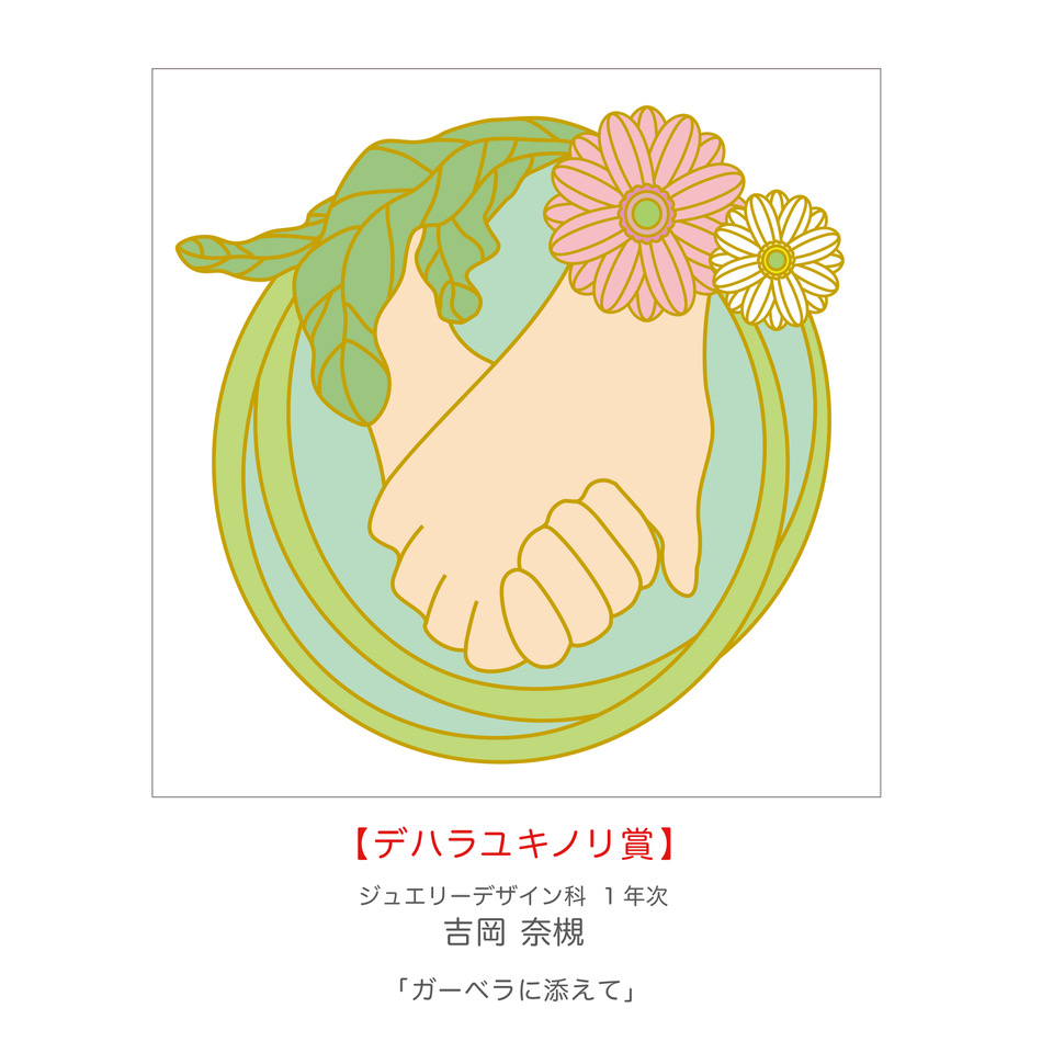 応募総数136点の中から受賞作品6点が選ばれ、ジュエリーデザイン科2年生の吉岡奈槻さんが審査員個人賞を受賞しました。