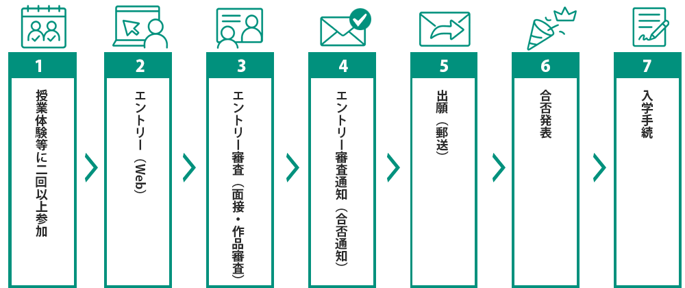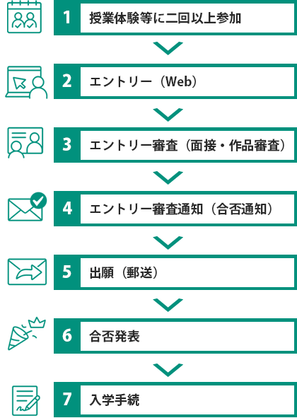 | 審査方法 | 面接・作品審査 ※指定の日時に面接・作品審査を実施します |