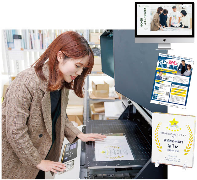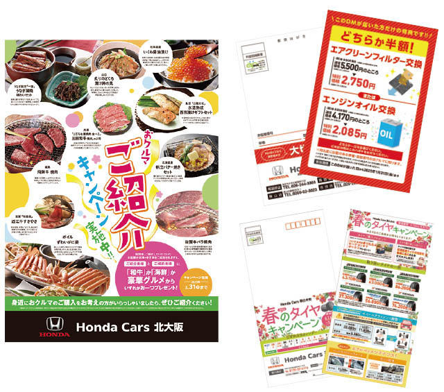 自動車ディーラーから依頼を受けたハガキやDM、販促物などをデザインしています。頭の中でイメージしたとおりにデザインを仕上げることができたときは大きな達成感があります。デザインをする上でこだわっていることは、クライアントの伝えたいことをいかにユーザーに届けるか、ということ。ユーザーが手にしたときの気持ちを想像して、デザインを検証するようにしています。また、デザインで使うソフトのスキルなど幅広い知識や技術を山脇で身につけていたのも、今の私の強みになっています。これからも紙媒体の制作物にこだわり、より良いデザインを追求していきたいと思っています。